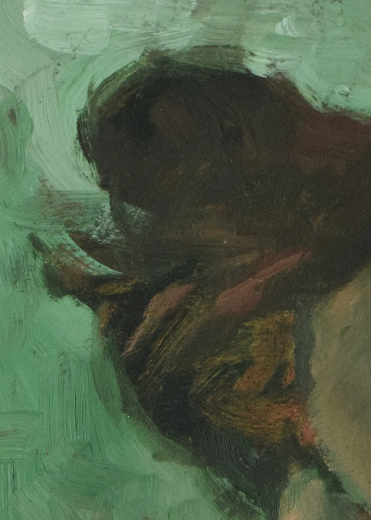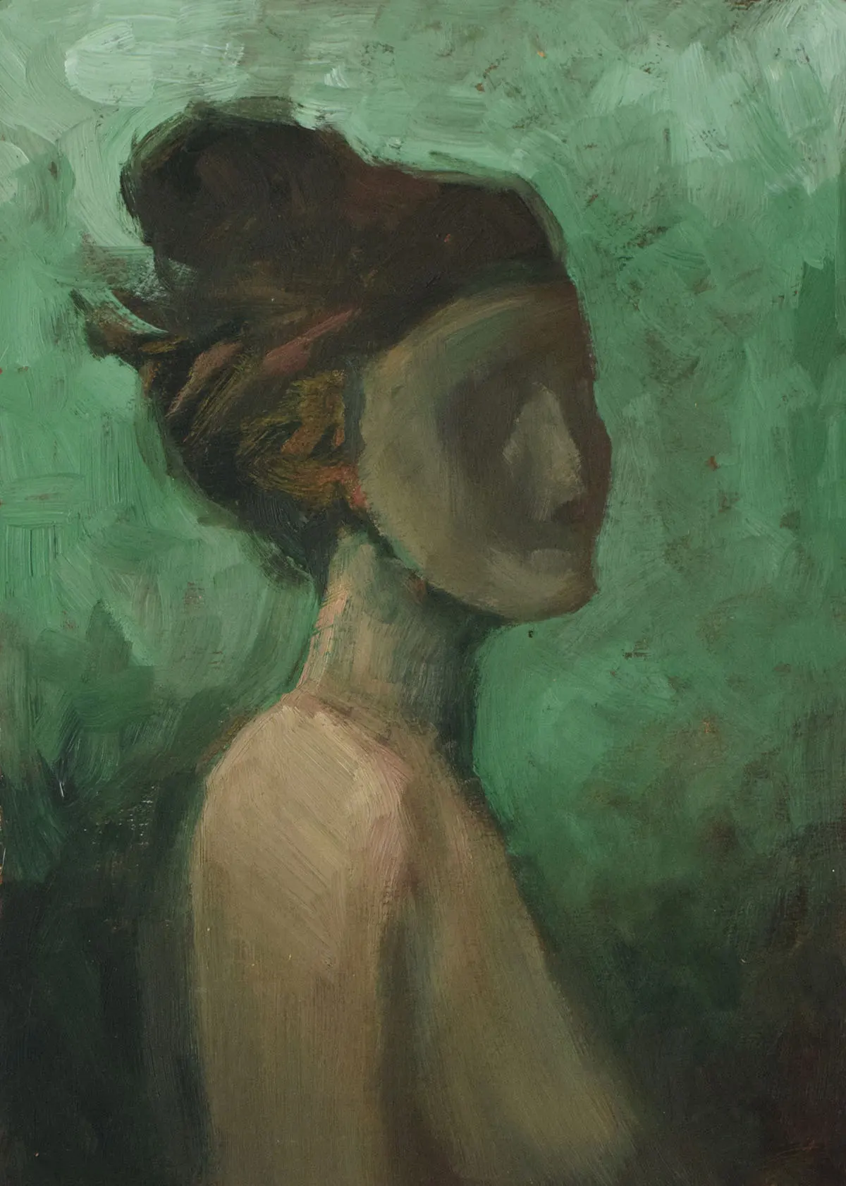 A obra sugere um estado de interioridade silenciosa, onde a identidade se desfaz e se torna indeterminada. Há uma sensação de afastamento e recolhimento, como se o sujeito habitasse um território entre presença e ausência, entre memória e esquecimento.